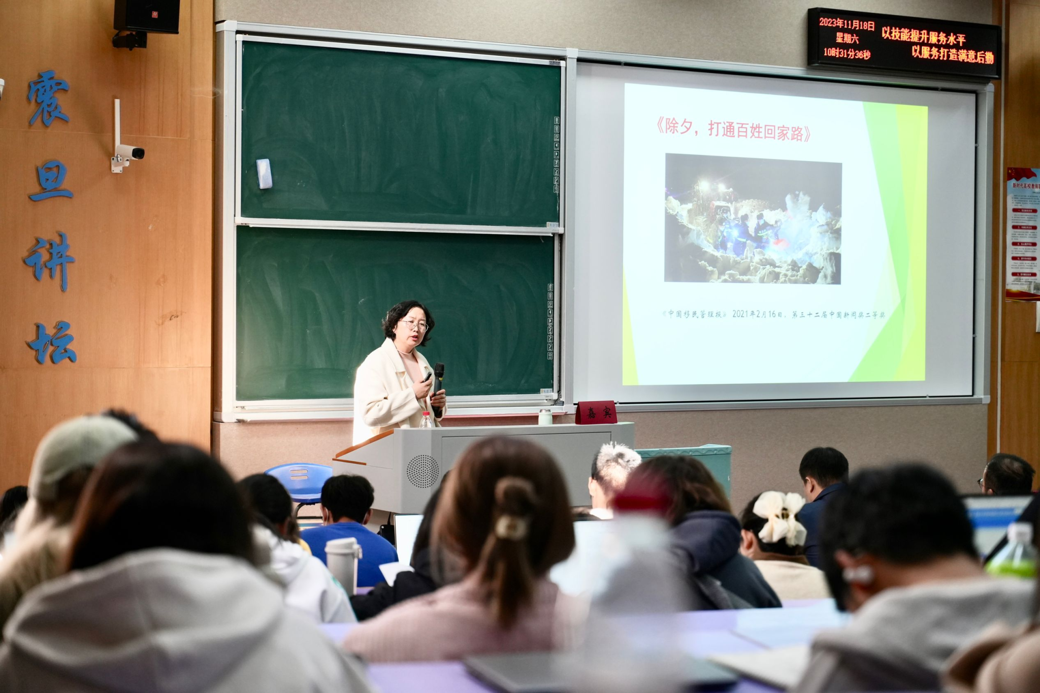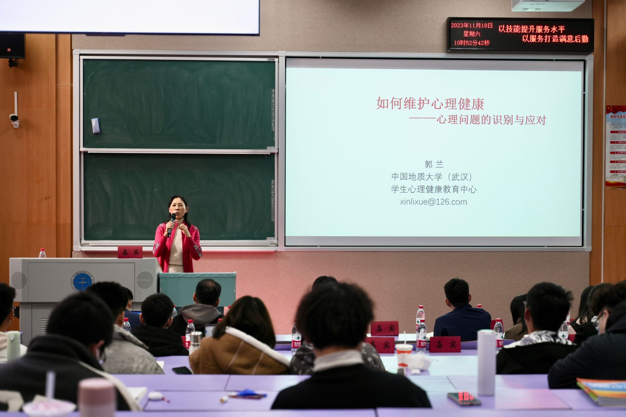 原应用心理学研究所所长郭兰教授开展了主题为《心理问题识别与应对》的心理健康工作技能培训。郭兰教授强调,作为学生干部,应做到既要关心自己,又要关心他人,争做心理健康的大学生。