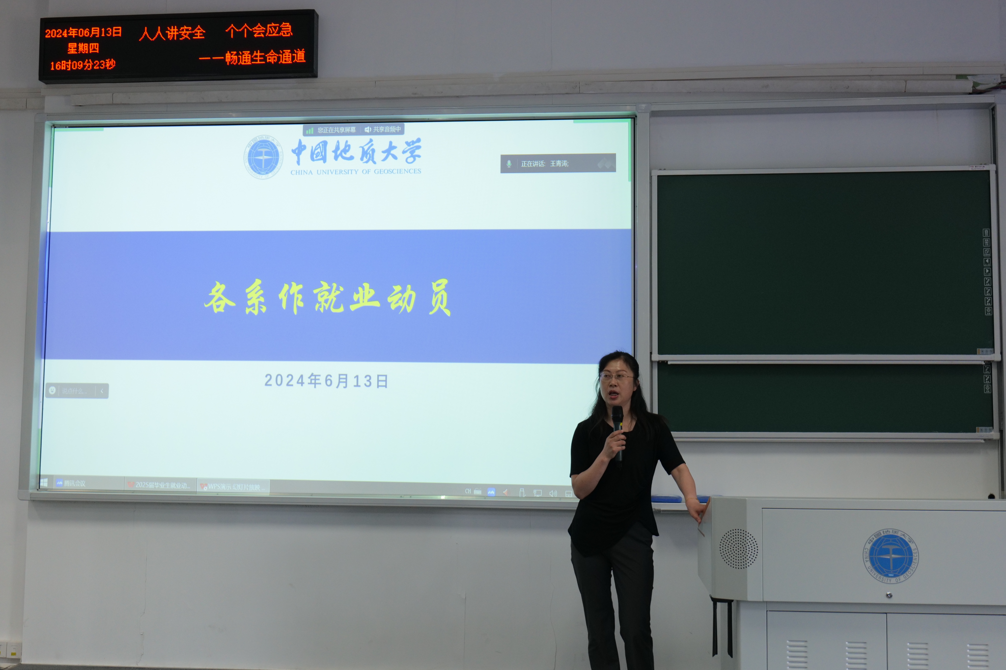 会议第二项,各系代表老师做就业动员讲话。法学系宋冬冬老师以自己学生的经历为例,强调提前规划职业生涯、善用学校资源的重要性,激励同学们明确就业目标,并为之奋斗。公共行政系李晓玉老师指出,无论选择就业还是考研,充分准备都是关键,建议毕业生们同时关注就业市场和考研动态,以应对多方面挑战。应急管理系黄砺老师则强调专业知识学习、实习经验积累及毕业环节对就业的关键作用。土地资源管理系方世明老师鼓励同学们要自信主动,积极与老师交流考研、就业及升学等问题。