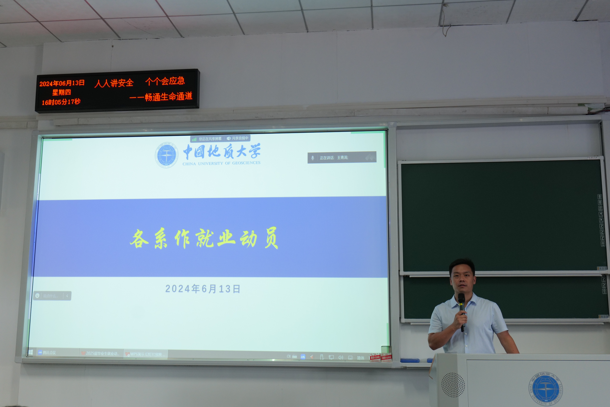 2025届毕业生就业动员大会在西区教三楼208教室顺利举行。学院党委书记张宽裕、党委副书记龚丽、学院副院长朱江洪,土地资源管理系主任方世明、公共行政系主任李晓玉、法学系副主任宋冬冬,应急管理系书记黄砺,2025届研究生辅导员王青涛,2025届毕业年级班主任罗辉,张士菊,陈星出席会议。会议由2025届本科生毕业生辅导员李姝慧老师主持。