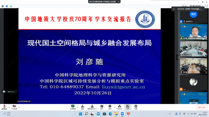 师生作题为“现代国土空间格局与城乡融合发展布局”的线上学术讲座。讲座由胡守庚院长主持。
