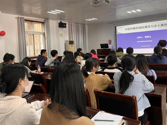 董绪公律师首先从个人仲裁机构的从业经验切入,讲述当前我国仲裁行业的发展形势及当前中国仲裁的法律程序和特征,点明中国仲裁正逐渐向国际化、全球化方向发展,论述仲裁活动中的调解程序依据、方式以及目标。他还结合《仲裁法》的修改,讲解了仲裁规则、仲裁与诉讼的区别,仲裁协议、程序令和请求权的使用,以及效率第一、程序不公开、法律条文支持较少和一裁终局等特点,并结合仲裁实证中鉴定、调解、责任及后果,对仲裁从业人员的高素质要求做了强调。他还向与会师生赠送了实践中裁决书完整的制作程序等完整PPT,为今后立志从事仲裁事务的师生指明了研究目标和方向。董绪公律师还和大家一起分享自己在仲裁工作中的一些实践经验和深入思考,并与韩国三级