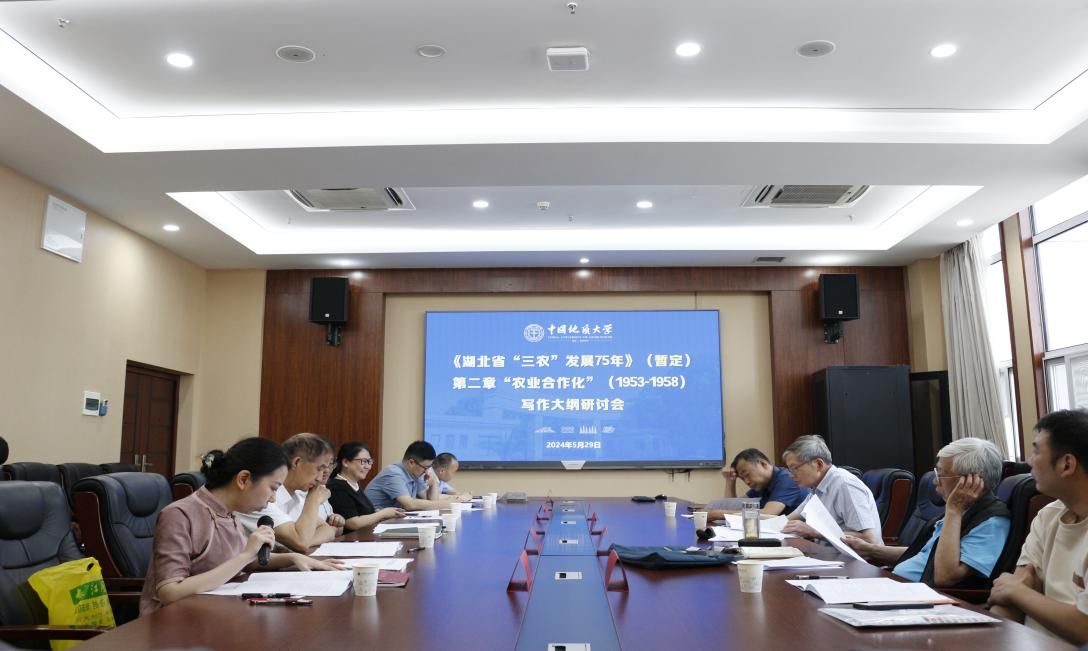 5月29日,湖北省三农问题研究会领导一行来校调研指导《湖北省“三农”发展75年》(暂定)课题研究。省三农问题研究会执行副会长兼秘书长、原中共湖北省委副秘书长刘兆麟,省三农问题研究会副会长余胜伟,省三农问题研究会副秘书长刘享平,省三农问题研究会秘书处秘书吕菲,中共武汉市委党校讲师袁婧,中共武汉市委组织部干部王原林,韩国三级