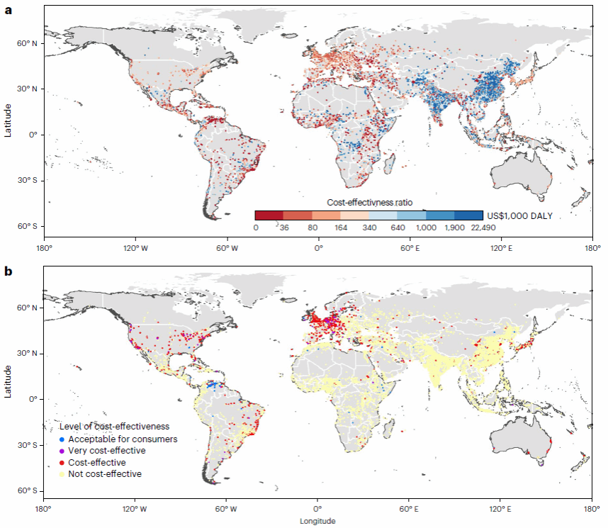 图4.世界城市的成本效益分布