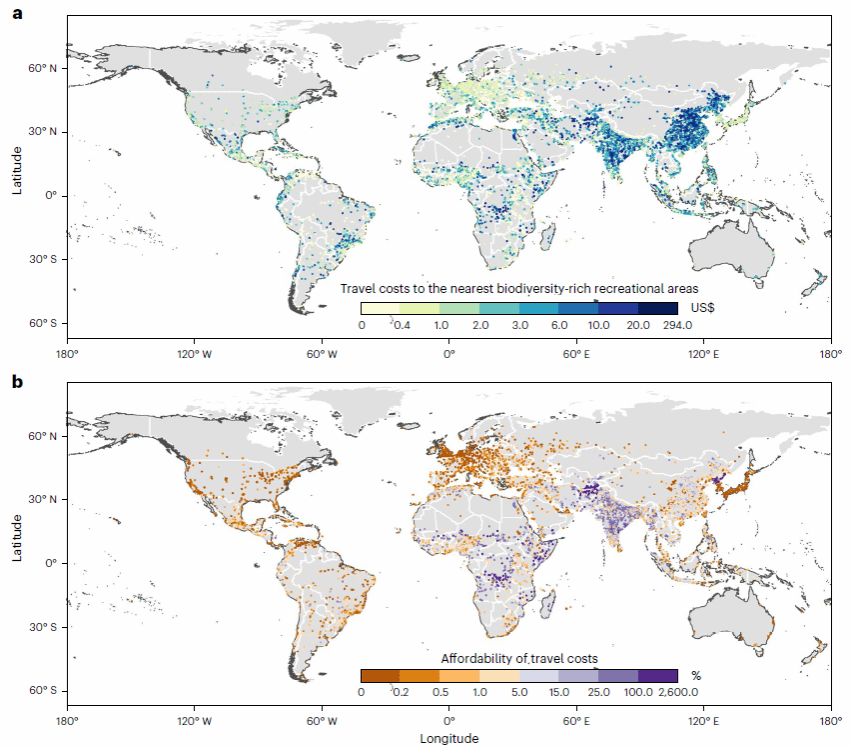 图2.城市居民访问生物多样性丰富休闲区的旅行成本和经济可承受性