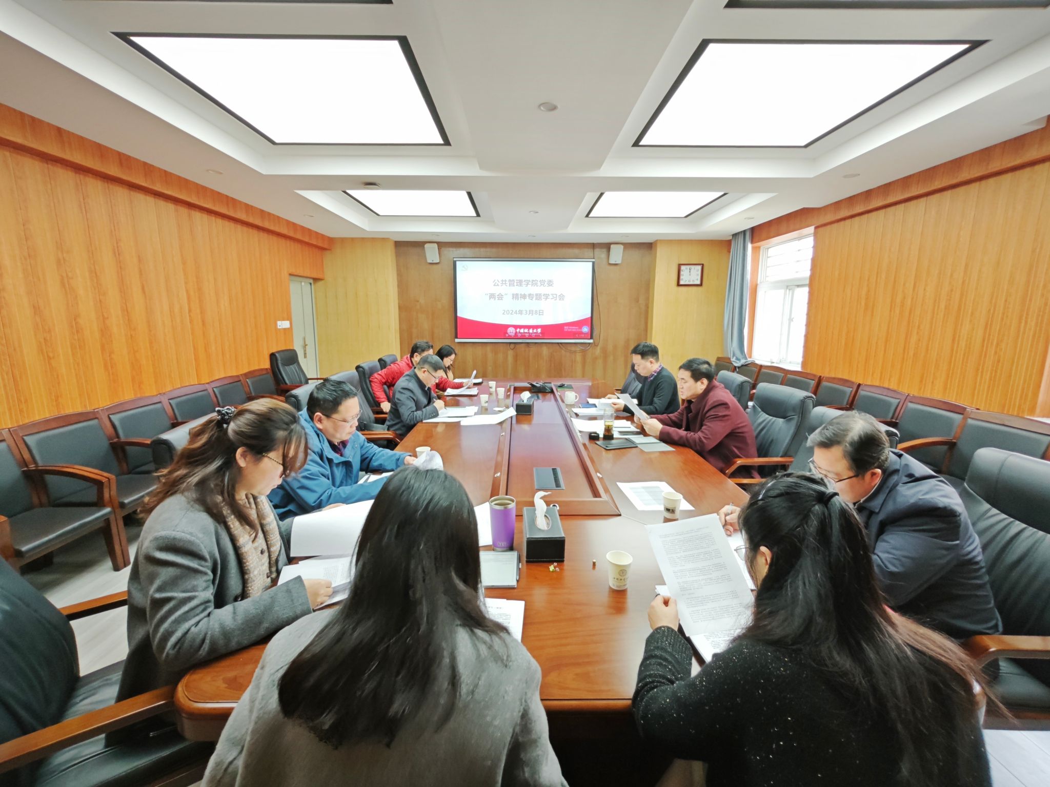 院长胡守庚讲到,2024年全国两会,恰处重要历史节点,承载新的使命任务。一年来,在以习近平同志为核心的党中央坚强领导下,我们深刻感受到全面建设社会主义现代化强国呈现新的积极变化。作为教育战线工作人员,建设教育强国、科技强国和人才强国的使命和担当责无旁贷。我们迫切地想要去开展新的实践,凝聚更大力量,加强新型高素质“善治”拔尖创新人才培养,努力构筑体现中国精神、中国价值、中国力量的公共管理自主知识体系,为科技创新、制度创新、人才支撑和国家治理能力提升等提供更好支持,助力加快破除阻碍新质生产力发展的落后生产关系,营造更加有利于新质生产力发展的环境,为中国式现代化强国建设贡献积极力量。