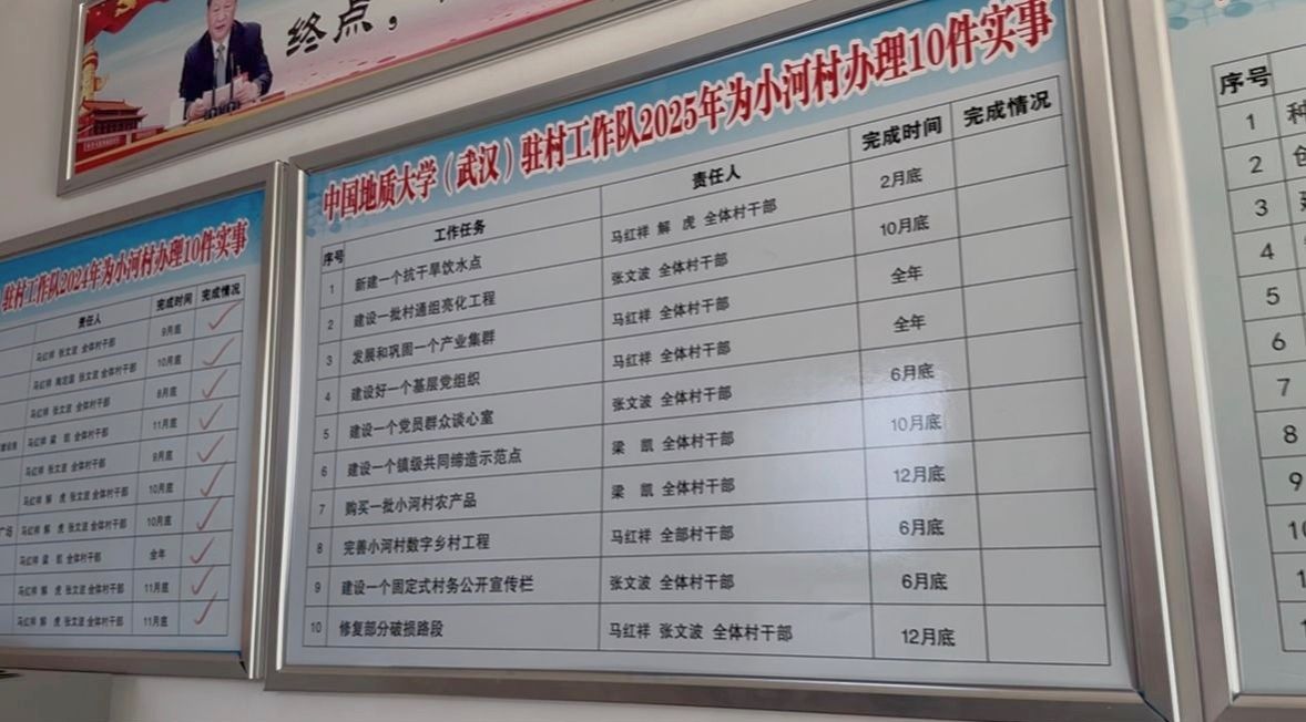 多批驻村工作队从教育、民生、基建、产业多个维度,按照“户户走到”“每年办十件实事”的思路助力脱贫攻坚与乡村振兴。从脚下的路、新落成的房屋到工作推进记录表,实践团成员真切感受到了驻村干部利用所学的知识和学校的资源为小河村发展带来的成效。
