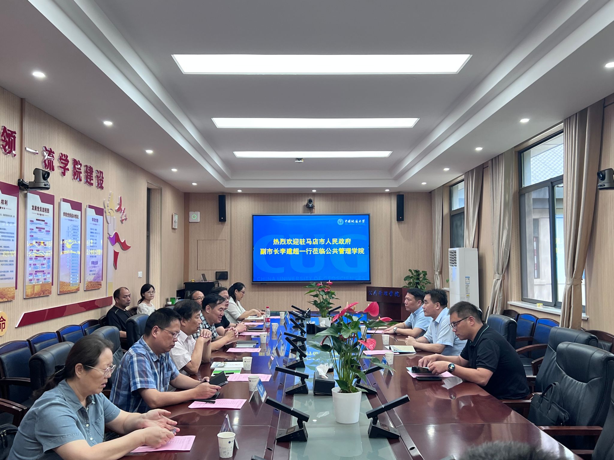 学院教师代表围绕乡村振兴、国土空间规划、国土空间修复、土地利用政策、社会(城市)治理、人力资源管理、应急管理、法律服务等方面介绍了科研进展及优势,交流了服务驻马店市的考虑和设想。