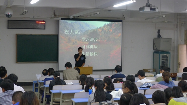 在两位老师具有建设性及指导性的发言之后,研究生新老生代表也发表了自己的感言。来自2011级土地资源管理专业向敬伟同学为新生们讲述了许多学习生活上的宝贵建议并感谢学校的栽培和养育,来自2012级法学专业王峰同学则期待着更多的机遇和挑战,希望能够在未来的三年里不断的完善自我,成就梦想,报效国家。在场的新生们无不仔细聆听,听到精彩之处均报以热烈的掌声。