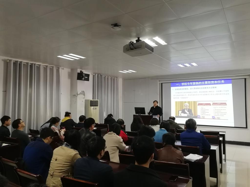 张吉军书记做总结讲话。张书记要求全院教职工严格落实学校和学院2019年各项工作要求,以昂扬的激情扎实做好2019年各项工作,为新中国成立70周年、学校迁汉办学45周年献礼。