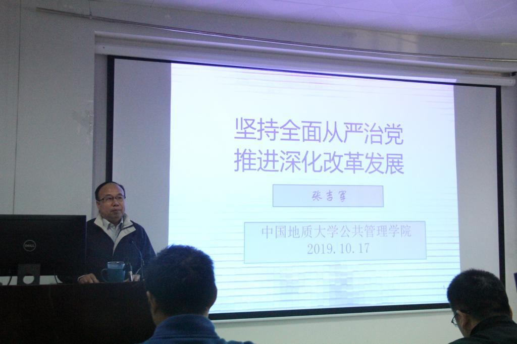 党委书记张吉军为学院全体教工党员、学生党员代表以及发展对象作了主题为“坚持全面从严治党,推进深化改革发展”的专题党课,党课由 韩国三级
