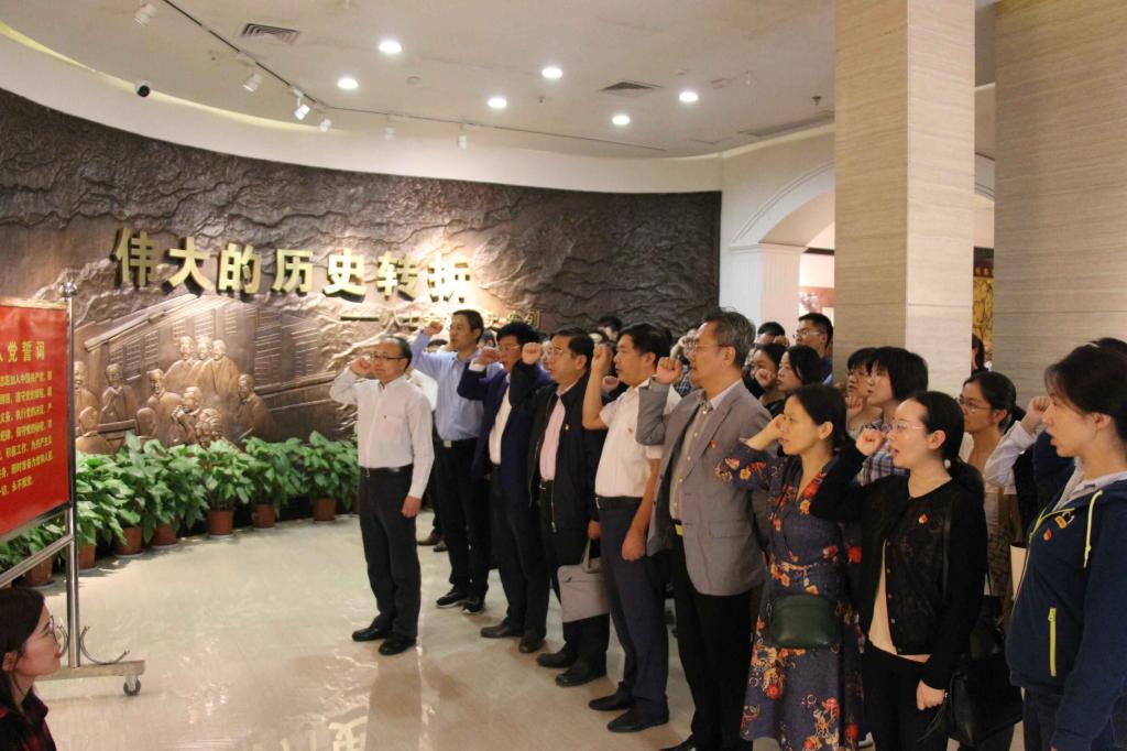 参观学习前,全体党员汇聚在一楼展览区的红色党旗前,在院党委张吉军书记的带领下重温了入党誓词,紧握的拳头、铿锵有力的声音,表达出对党的无限忠诚和热爱,也提醒着我们要牢记作为一名共产党员光荣的初心和使命。