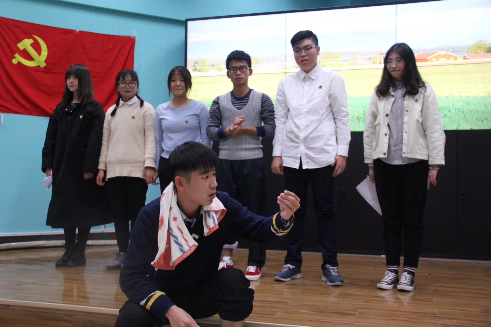 党委副书记刘国华、团委副书记(主持工作)李姝慧及学工组全体老师,学校学院100余名党员、团员参与此次活动。