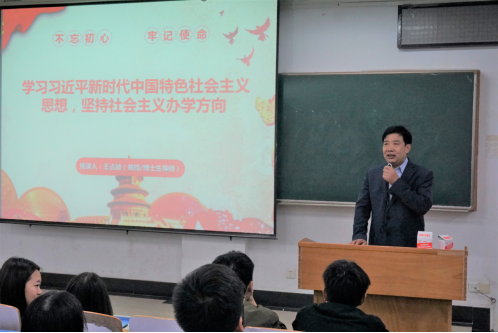 在北综203室举行“不忘初心,牢记使命”主题教育专题党课,院长王占岐、党委副书记刘国华分别主讲主题党课。学院全体学生党员参加学习。