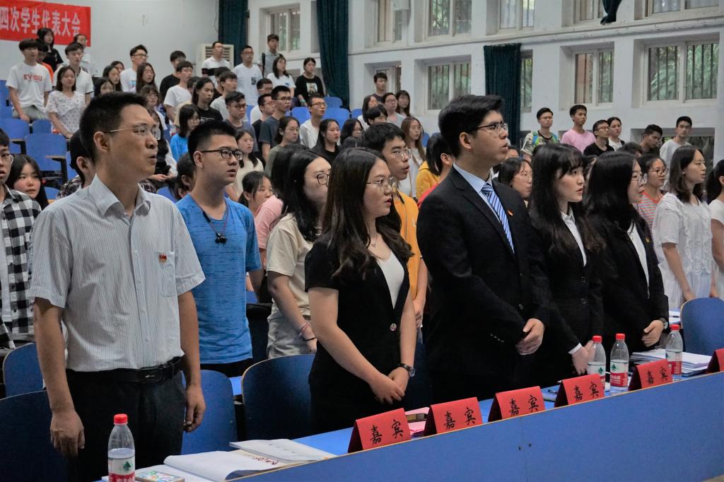 第四次学生代表大会,于6月16日在教一楼一阶举行。118名团代会代表和126名学代会代表参加本次大会。大会由学院团委副书记吴波老师主持。