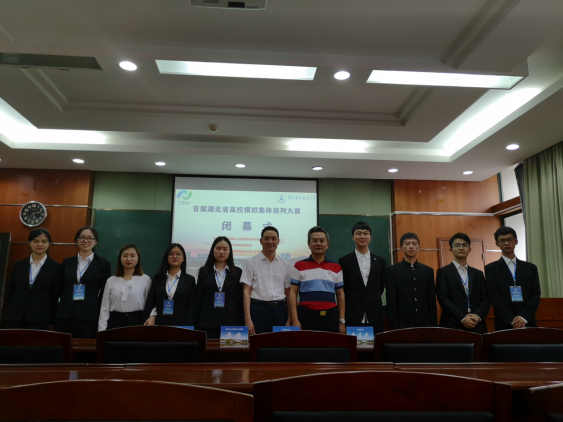 曾伟教授、谢小青副教授带领十名学生前往中南财经政法大学参加首届湖北省高校模拟集体谈判大赛。老师同学们斗志昂扬,对即将到来的比赛充满信心。上午八点左右,主办方举办了开幕式。经过短暂的候场,上午十点,劳方代表队和资方代表队分别参加了初赛,在赛场上,同学们与对方针锋相对,据理力争,充满了竞争精神和拼搏意识,赛出了风采,赛出了水平。经过评委合议,下午三点半,劳方代表队成功晋级决赛,与中南财经政法大学对战,针对YT公司劳资双方就四个议题展开了激烈的交锋,现场十分精彩。经过评委的评审,我员曾伟教授和谢小青副教授获得优秀指导教师,劳方代表队最终荣获二等奖,资方代表队荣获三等奖,公共事业管理专业孙雨霖同学荣获优秀谈判员一等奖。