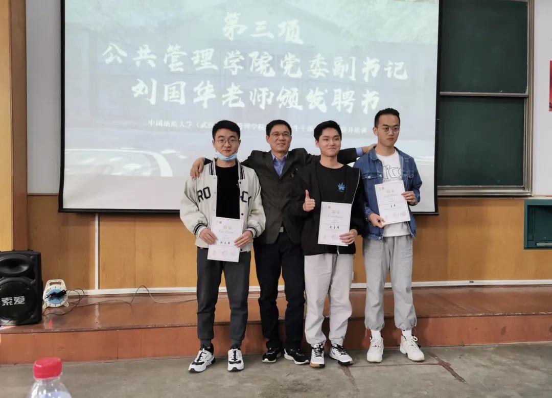 随后,党委副书记刘国华颁发了对上届主席及上届部长的聘书,同时上届学生会主席何子耕和上届实习就业创业中心部长陈泽贤发表了对新成员的期望。何子耕学长在讲话中指出工作当中摩擦是正常的,这表示着团队中的每个人都希望为团队做出贡献,他还表示我们要更加团结,不要畏惧困难与挑战;陈泽贤学长则重点强调了学业的重要性,告诫我们不要在挂科之后再后悔,要提前做准备,希望我们能够更加重视学业。