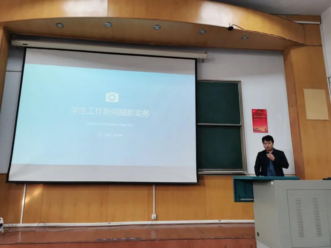 培训第二讲由校党委宣传部许小康老师主讲,培训主要围绕新闻摄影中的一些基本知识、拍摄要领、注意事项等内容展开。许老师强调了新网摄影的四个特性:时效性、真实性、典型性、现场感。并向我们介绍了摄影时会用到的几个器材,讲述了我们拍摄前的准备工作和拍摄时的注意事项、基本要求,教授我们几个摄影的小技巧。
