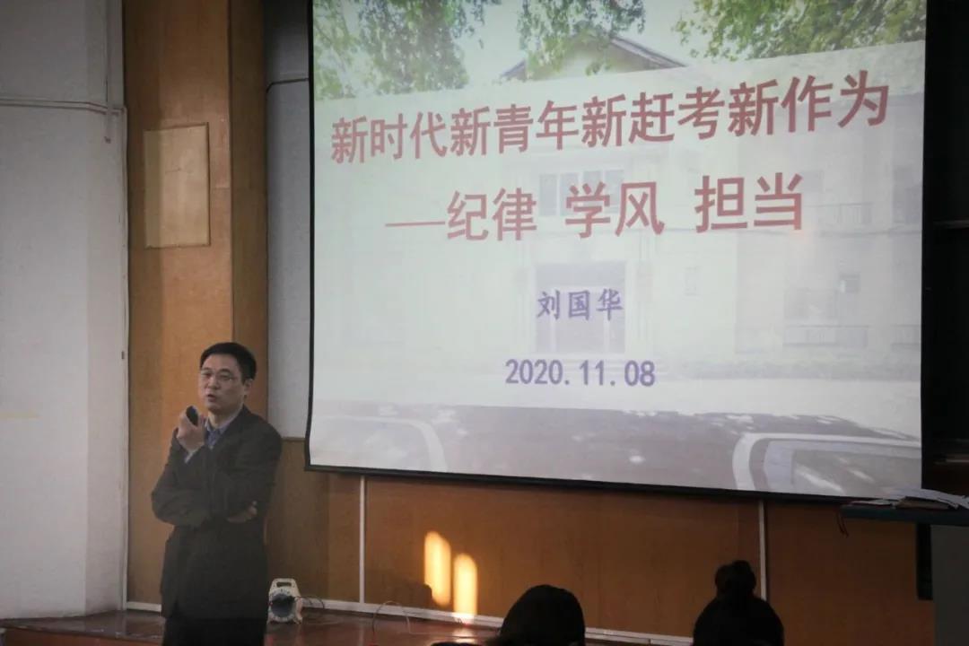 刘国华老师以《新时代新青年新赶考新作为——纪律 学风 担当》为题开启第一讲。他认为,本研学生大学阶段同样是一段赶考旅程,自己是自己的答卷人、阅卷人,自己对自己须讲政治、守纪律、负责任、有效率,进行“自我革命”,打赢自我“保卫战”,学会积势蓄势,为自己科学成长奠定更加坚实基础。