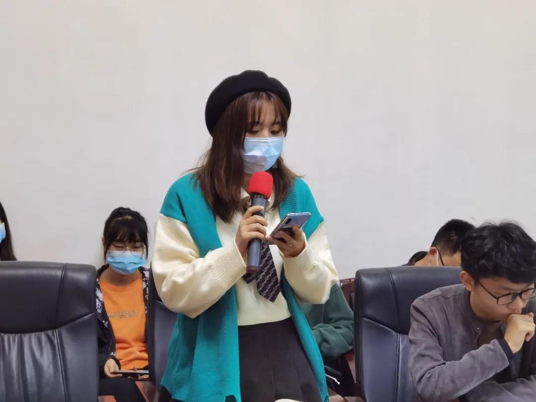 第五项,学生自由提问环节。现场同学针对专业学习方面问题进行提问,老师们都一一耐心地予以答复,权益服务中心的同学们也进行了详细的记录。