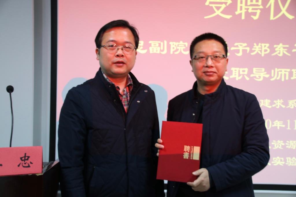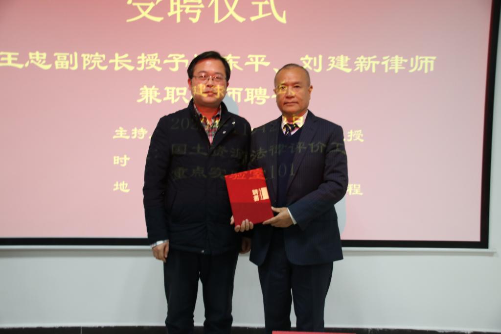 在授聘仪式上,王忠副院长致简短的欢迎辞后,授予郑东平、刘建新两位律师兼职导师聘书。