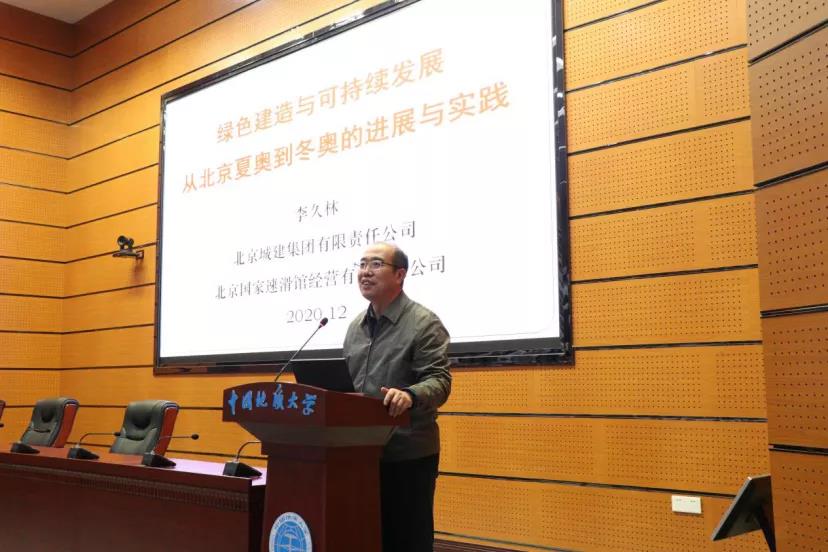 优秀校友、“双奥总工”李久林工程师主讲,主题为:绿色建造与可持续发展;从北京夏奥到东奥的进展与实践。