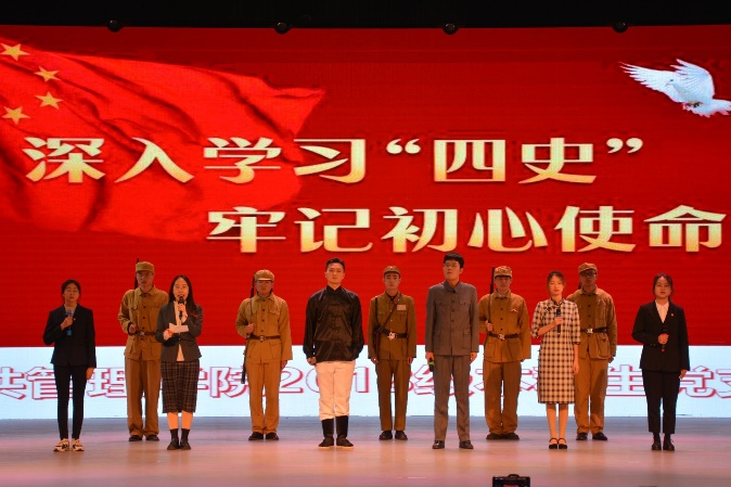 由173181团支部宋文恬、索云龙等同学组成的“一只红星向党队”在学院初赛、学校复赛中脱颖而出,成功进入决赛,站在了弘毅堂的舞台上,以学习强国、情景剧等形式与我们一起回忆了党史中的瞿秋白先生,并且获得了校级一等奖的好成绩。
