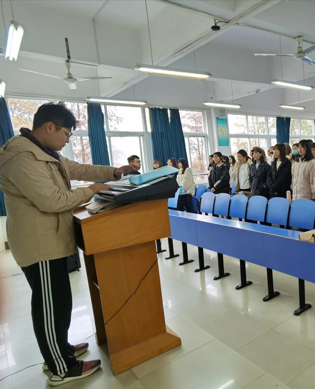 一次次认真的排练,一声声坚定的歌唱……从秋风瑟瑟到腊月冬寒,每一份付出都值得感谢。各年级同学冒雨顶风参加的次次排练,学生会成员们细心的后勤工作,指挥谭治宇同学的耐心指导,19级蔡明勋同学的深情伴奏,以及各位老师对我们的声声鼓励……所有的鲜花都因汗水而绽放!