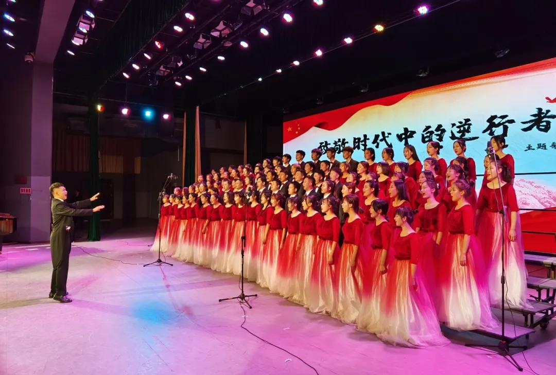 在18级工程学院谭治宇同学的指挥下,包括学院党委书记张吉军老师、党委副书记刘国华老师在内的共12位老师及83名本研学生共同为大家带来了一首红色经典。