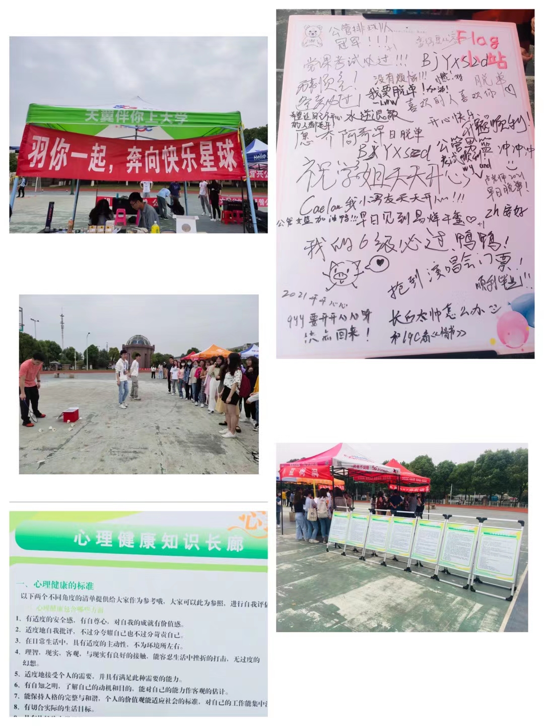 心理知识科普长廊通过展板的形式吸引路过的同学们驻足学习大学生心理健康知识,提升大家对自身心理状况的了解;在flag小站,同学们满怀期待地写下了自己的愿望和对未来的美好祝愿。而小益解忧箱则接收了同学们对于当下的许多忧虑烦恼与对未来的种种迷茫,后续小益也会在“你的益答”推文中为同学们一一解答困惑;烦恼大作战则更是火爆,“数字炸弹”、“心口不一”、“开关游戏”、“数马游戏”、“谁是小熊”等趣味互动小游戏游戏让同学们应接不暇,竞相参与,现场气氛十分热烈。