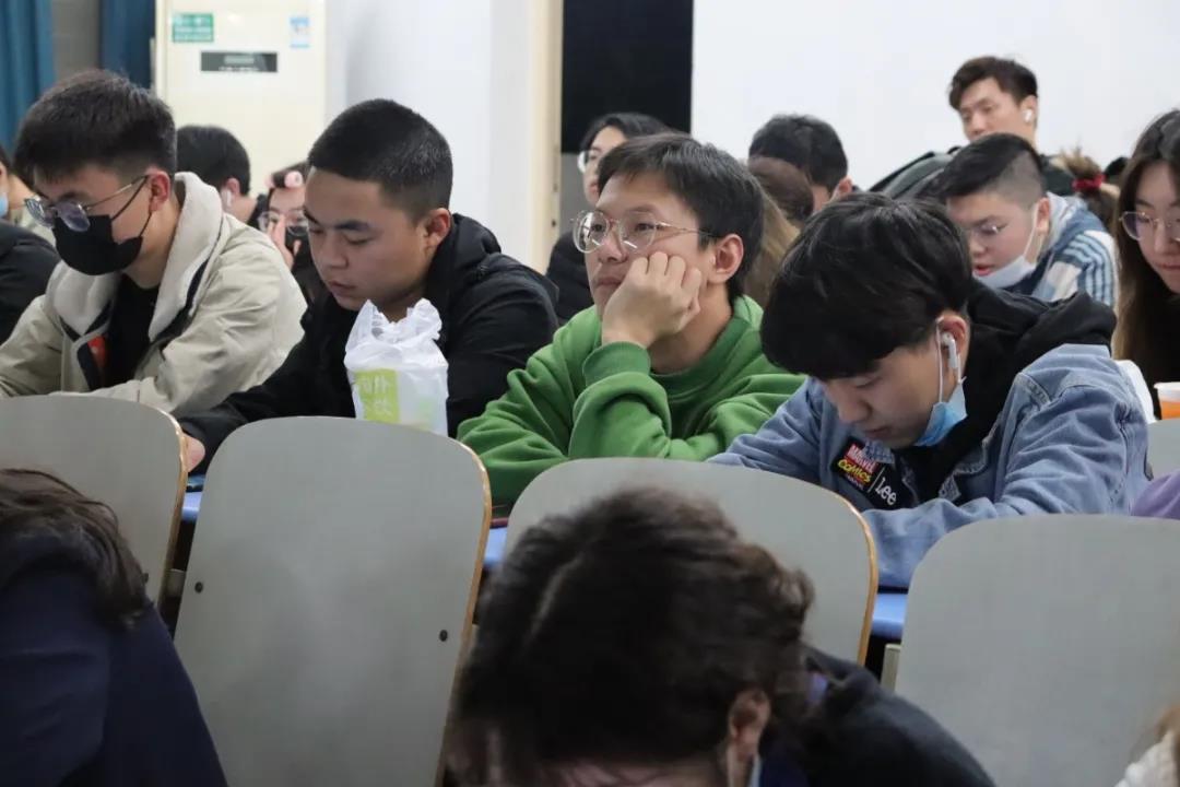 吴老师运用表格等方法,对年级各专业及班级的学习情况进行了解读,让同学们非常直观的了解了年级学风情况及自己学习大致位次区间,他提醒同学们要抓紧大学剩余的时间,努力提高学习成绩,为之后发展打造出亮眼成绩单。