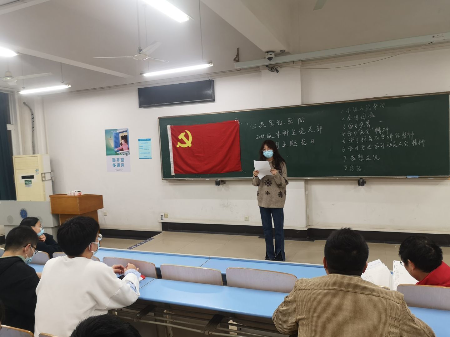 会议开始,朱嘉敏同志组织全体同志齐唱国歌并宣誓。之后,朱嘉敏带领全体同志学习《中国共产党章程》第七章。