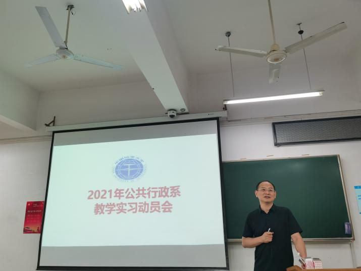 (通讯员:胡东哲 胡学湉)6月24日下午16:30,2021年公共行政系教学实习动员大会在北综205教室举行,会议由公共行政系张士菊副教授主持,公共行政系卓成刚教授、谢昕副教授、李晓玉副教授,李冰清博士、钱文强博士以及公共行政系2019级全体学生参加会议。