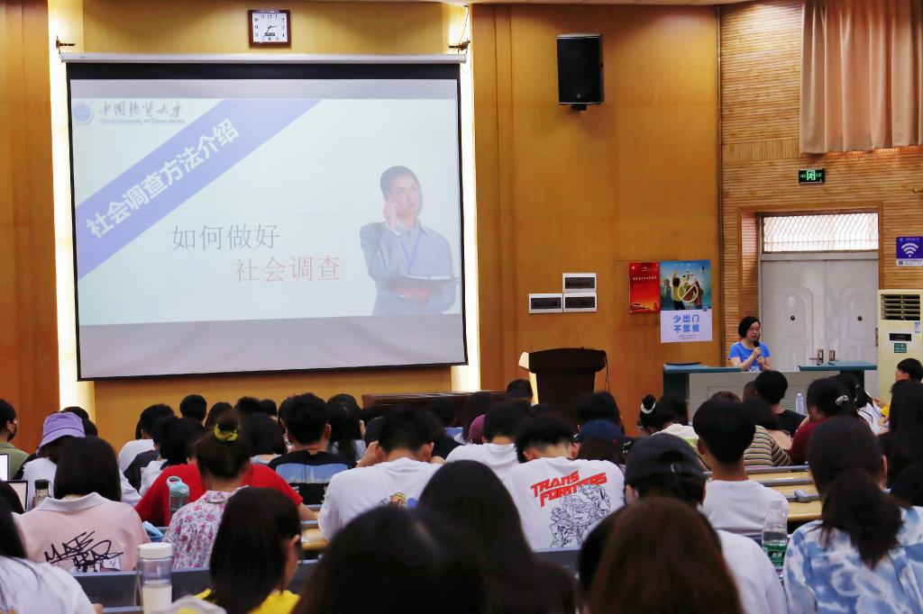 随后,马克思主义学院杨琴老师以《如何做好社会调查》为题作辅导报告。杨琴老师围绕“什么是”“为什么”“怎么做”三个要点详细剖析了开展社会调查研究的各项内容。在“什么是社会调查”板块,讲述了社会调查的基本定义;在“为什么要开展社会调查”板块,利用我国近期严格治理中小学校外辅导的例子,深入浅出地道出了社会调查对于社会治理的重要性,让同学们明白了社会调查的意义不仅在于描述社会现状,更在于解释原因、分析社会现象的发展趋势;在“如何开展社会调查”板块,将社会调查划分为五个实施步骤,并对每一个实施步骤进行展开讲解,将其划分为更细致的操作手段。整个讲授过程层次分明、条理清晰。对于杨琴老师细致入微、娓娓道来的辅导,同学们纷纷表示受益匪浅。