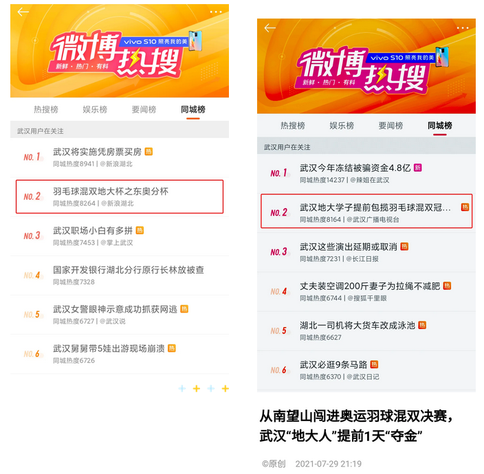 多个话题登上微博同城热搜