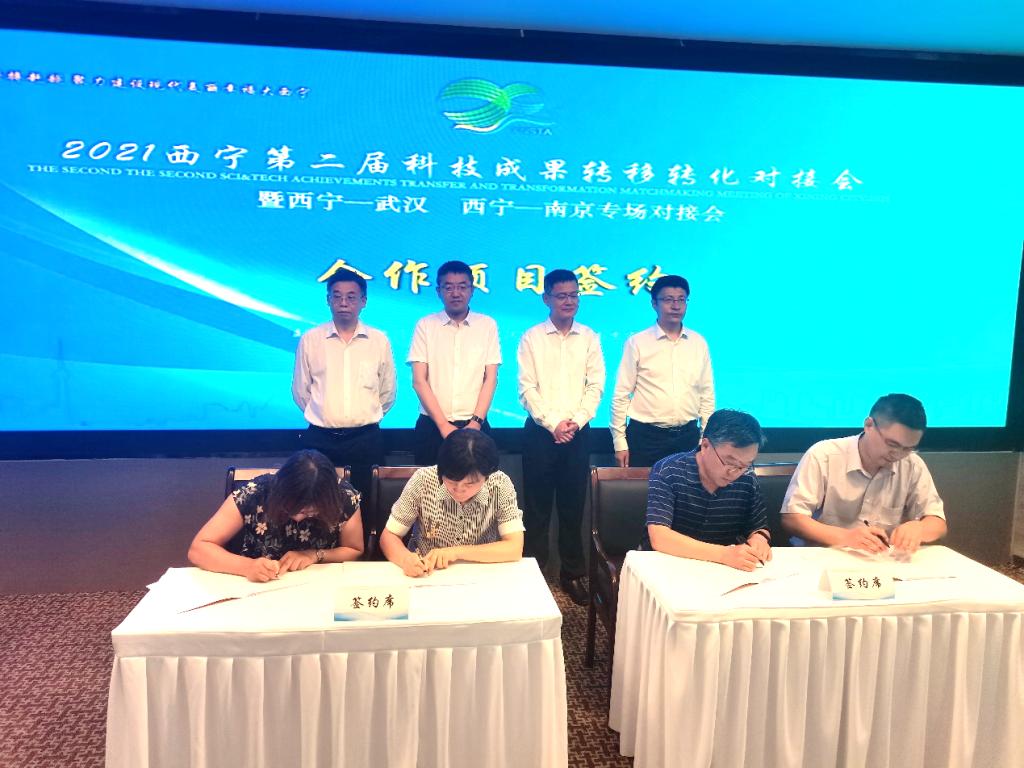 党委副书记刘国华作为嘉宾,与西宁市副市长陈爱红等五人共同按下了“2021年西宁第二届科技成果转移转化对接会——暨西宁-武汉 西宁-南京专场对接会”开幕按钮。开幕式后,本着建立长期、紧密的合作关系,刘国华副书记与李为民副局长分别代表韩国三级
