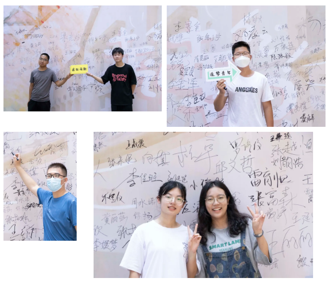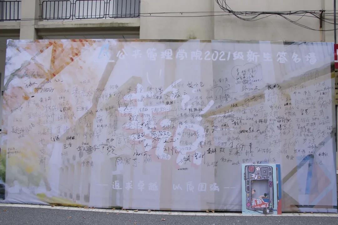 新生们完成报到手续后,纷纷到专属公管学院的签名墙上留下自己的名字并合影留念。
