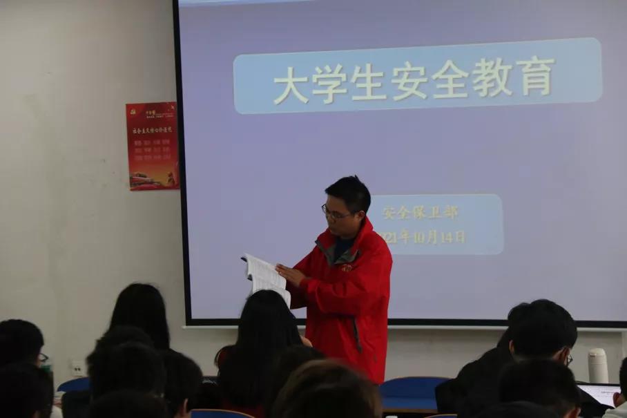 在有关电信诈骗方面,彭部长特别提到习近平总书记和李克强总理对打击治理电信网络诈骗犯罪工作做出的重要指示,为同学们敲响警钟。在防火部分,彭部长为同学们列举了近年来校内发生的微型火灾案例,再次强调严禁携带大功率电器的校规校纪,督促学生进行检查工作,要求学生必须掌握消防灭火器的使用方法。而鉴于近年来大学生申请不良校园贷而受危害的案例层出不穷,彭部长则以具体案例为切入点提醒同学们远离不良校园贷,避免酿成惨痛后果。此后,彭部长分别就校园交通安全、网络安全等内容为同学们进行了逐一的讲解,帮助全体同学在思想上绷紧防范的弦。