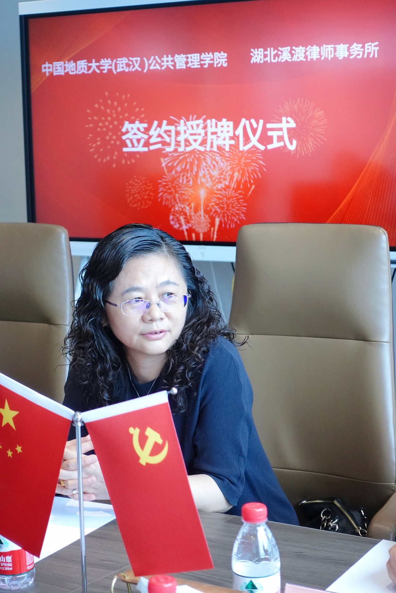 现挂职地质大学校办副主任的夏云娇老师,用视野、格局、情怀、雄心、成果、党建六个词高度概括了溪渡律所的特点与合作前景:临江见船的视野,胸纳高校的格局,渡人渡己的情怀,争做翘楚的雄心,签约授牌的成果,加强联合的党建。