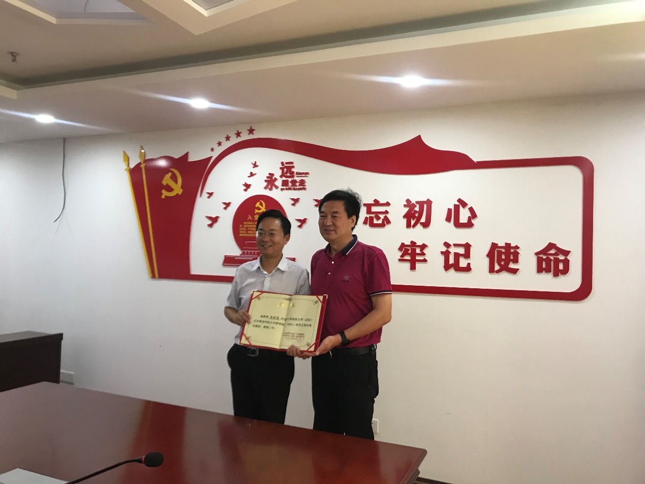 8月4日,宜昌市社科联副主席龙会忠受聘担任MPA中心校外导师。学院党委书记张宽裕,副院长王忠,MPA中心校外导师代表郑承志,公共行政系部分教师代表参加受聘仪式。王忠副院长主持受聘仪式,学院党委书记张宽裕向龙会忠副主席授予聘书。