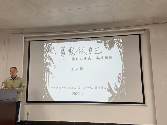 、自然资源部法治研究重点实验室、学校法律协会邀请,4月10日下午,学校“银龄宣讲团”成员王宗廷教授为同学们进行了以“勇敢做自己——学习二十大,成才报国”为主题的宣讲。
