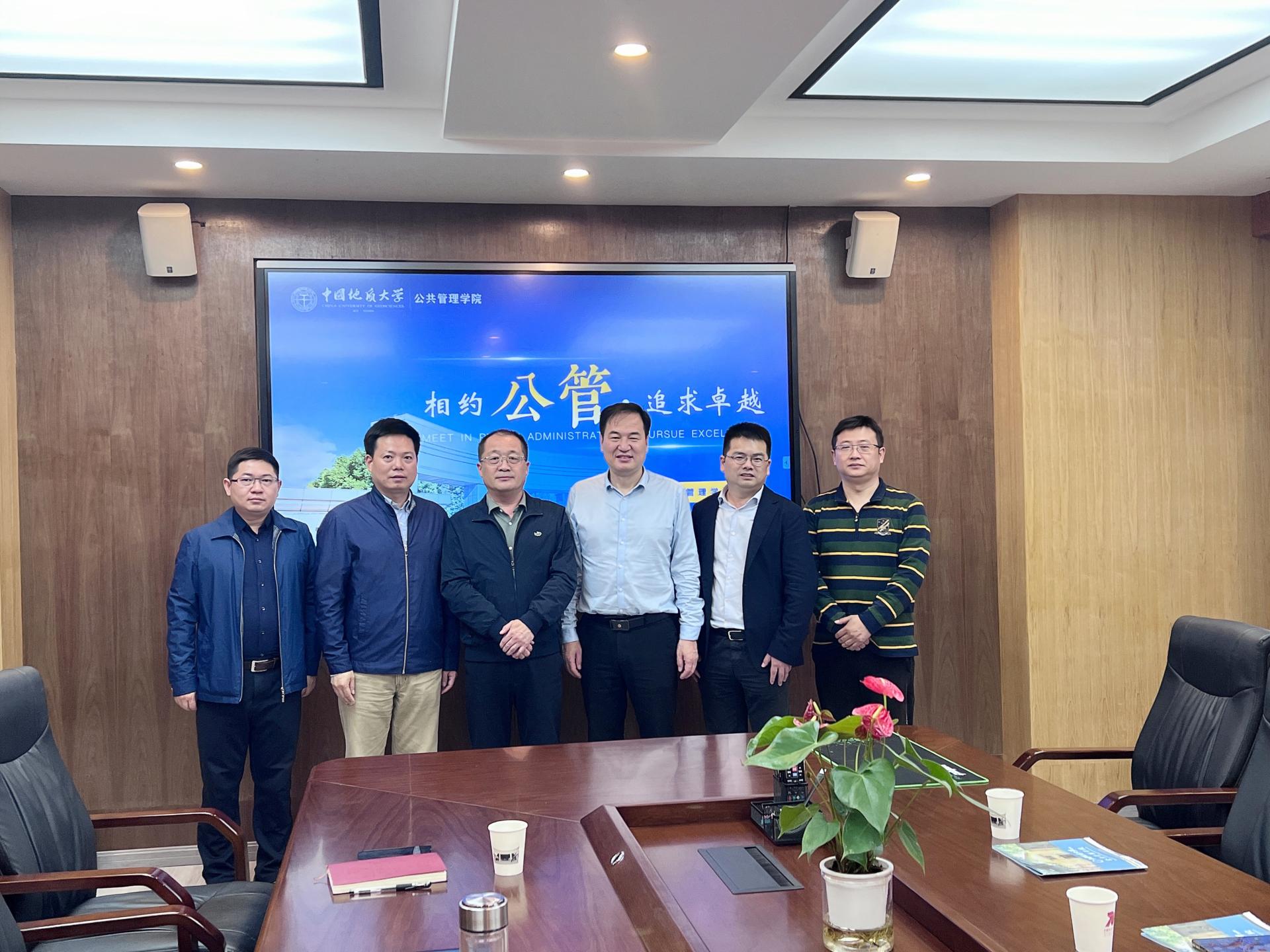 胡守庚介绍了办学七十年来学校取得的辉煌成就,详细介绍了公管学院的办学理念、办学特色以及在科学研究、智库建设和科技创新等方面取得的积极进展,介绍了公共管理和法学学科发展潜力,他表示希望在资源环境安全、矿山复垦、灾害防治、智慧应急、知识产权转化等领域开展合作。