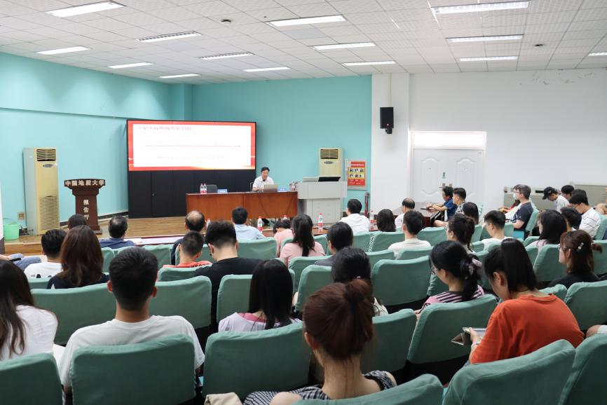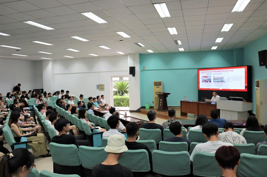 教师代表、近百名学生在北一楼学术报告厅聆听此次讲座。讲座由胡守庚院长主持。