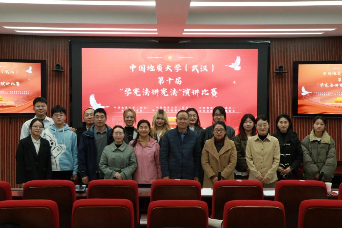 “学宪法 讲宪法”演讲比赛第一名同学进行了精彩的展演;校党委副书记王林清为学校第十届“学宪法 讲宪法”演讲比赛活动获奖者颁奖。