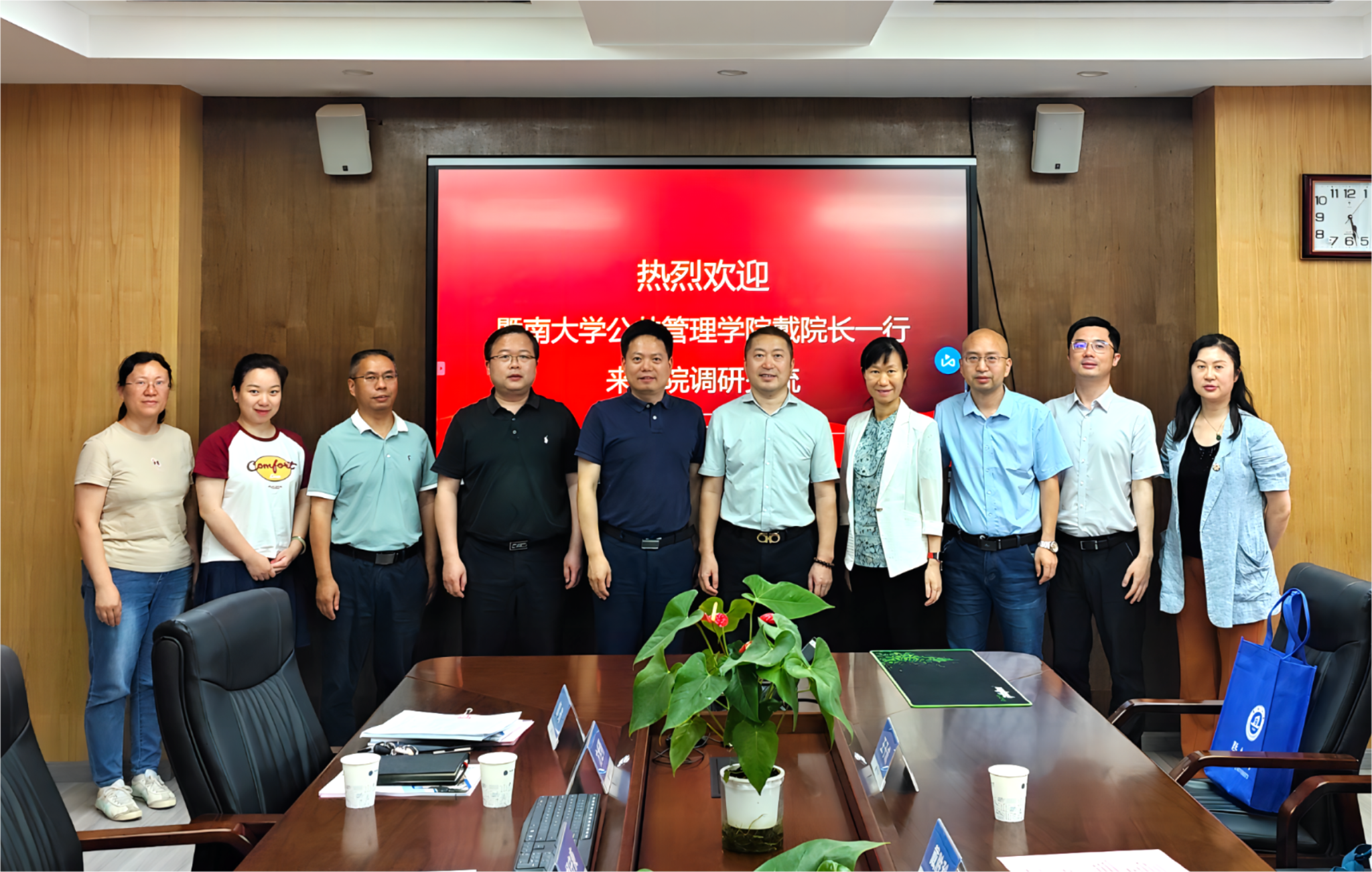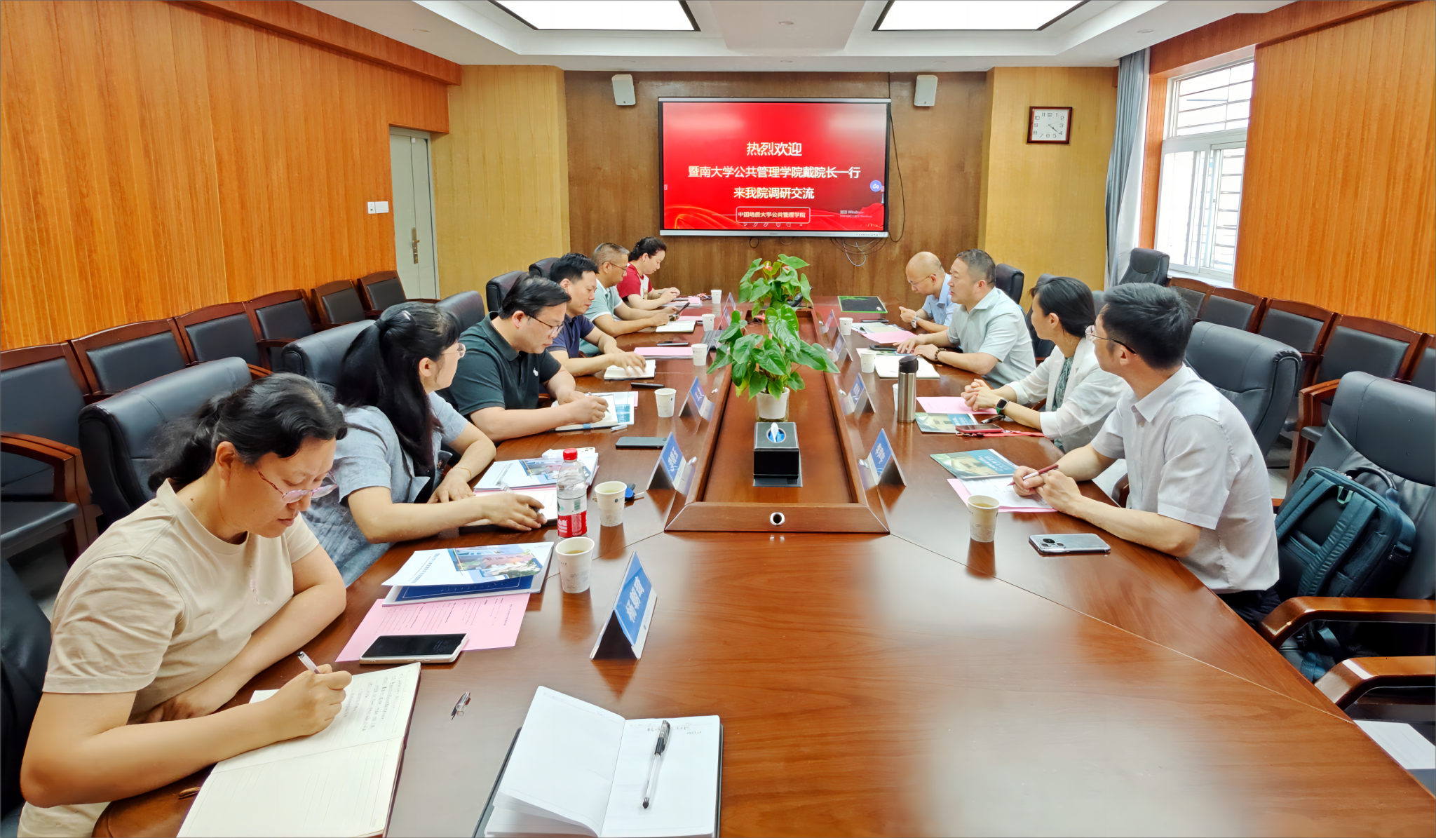 /应急管理学院院长戴胜利、副院长胡涤非、院长助理王子成、培训中心主任李声宇一行来院调研交流。学院院长胡守庚、副院长王忠、土地资源管理系主任方世明、公共行政系主任李晓玉、业务管理办公室主任杨朝琦、MPA中心办公室主任邹玮等参加座谈会。