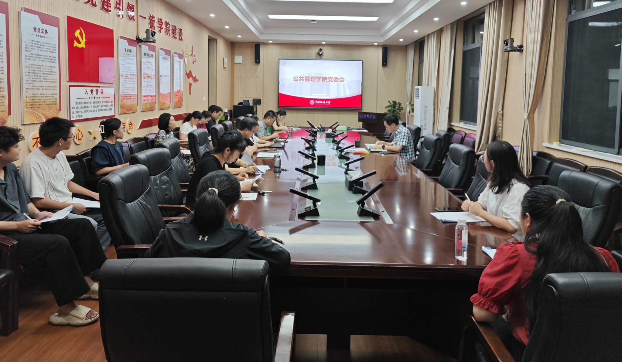 会上,学院党委书记张宽裕领学了党的二十届三中全会、全国教育大会精神及学校新学期工作布置会精神。副院长龚健、王忠、李世祥、朱江洪、团委书记李姝慧分别就学院科研,MPA教育,实验教学、实验室安全、资产管理,研究生教育,就业、安全稳定等工作进行相关数据通报、重要任务布置和重要事项提醒。副院长吕凌燕通报学院迎接本科教育教学审核评估演练相关情况,并结合9月29日晚党委(扩大)会专题研究本科教育教学审核评估工作形成的意见,对学院教师层面如何做好相关工作提出了清单式的任务要求。她还通报了学院评估响应机制的建立、工作专班的调整以及迎评期间的具体工作要求。