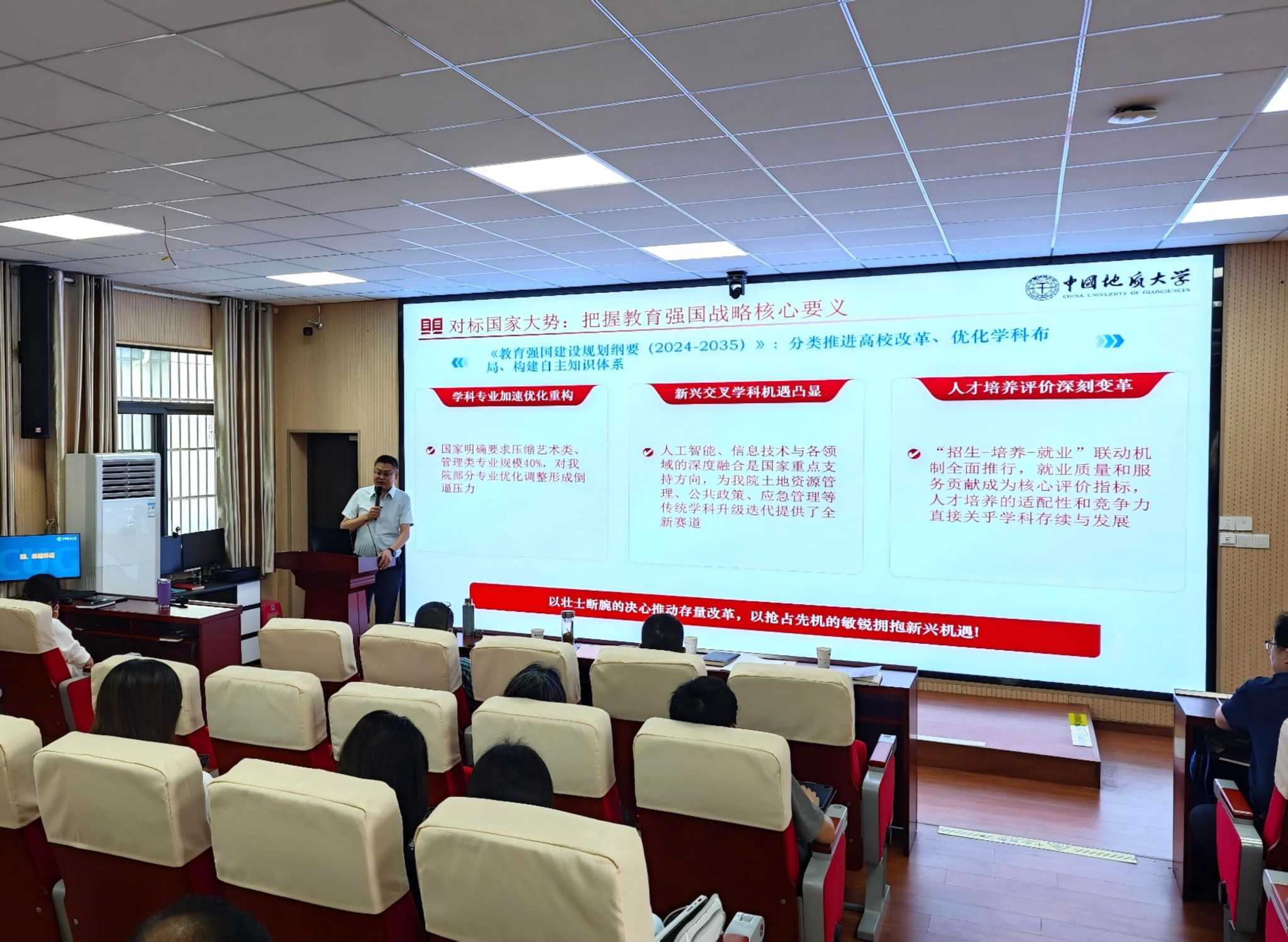 要准确把握时代发展大势,在复杂变局中坚定发展方向;要勇于自我革新,深入剖析制约发展的瓶颈问题;要科学谋划长远蓝图,明确学院在新时代的战略定位;更要聚焦实干路径,以扎实的工作成效推动学院各项事业迈上新台阶,开创发展新局面。