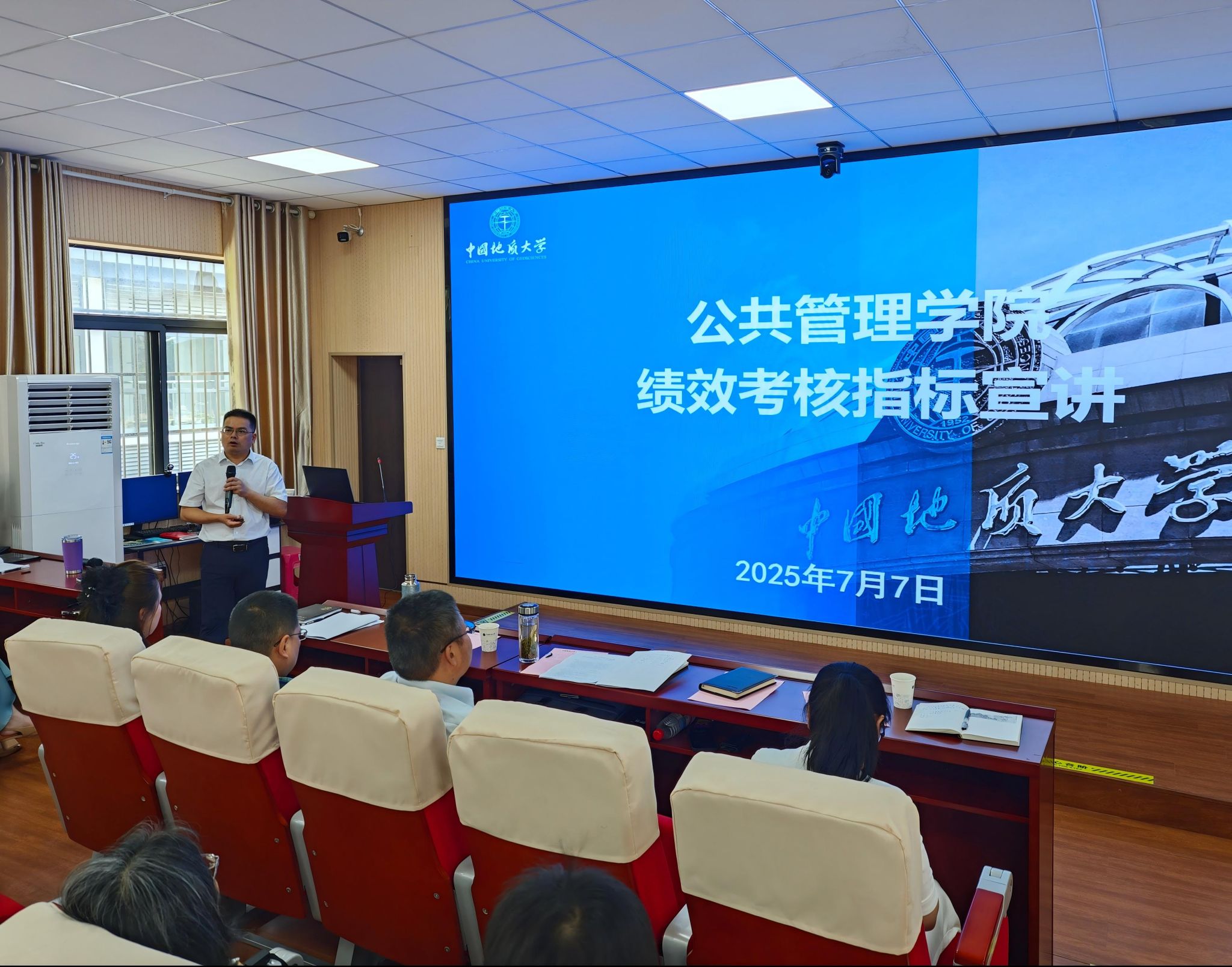为构建科学高效的激励机制,院长龚健向全体教职工详细介绍学院绩效考核方案。该方案涵盖教学科研人员、行政管理人员的目标业绩绩效指标及突出贡献业绩绩效指标,旨在通过科学、公平、动态的考核分配体系,助力学院高质量发展。该方案经前期多轮研究讨论、征求意见并修改完善。大会现场,全体教职工一致审议通过了该方案。