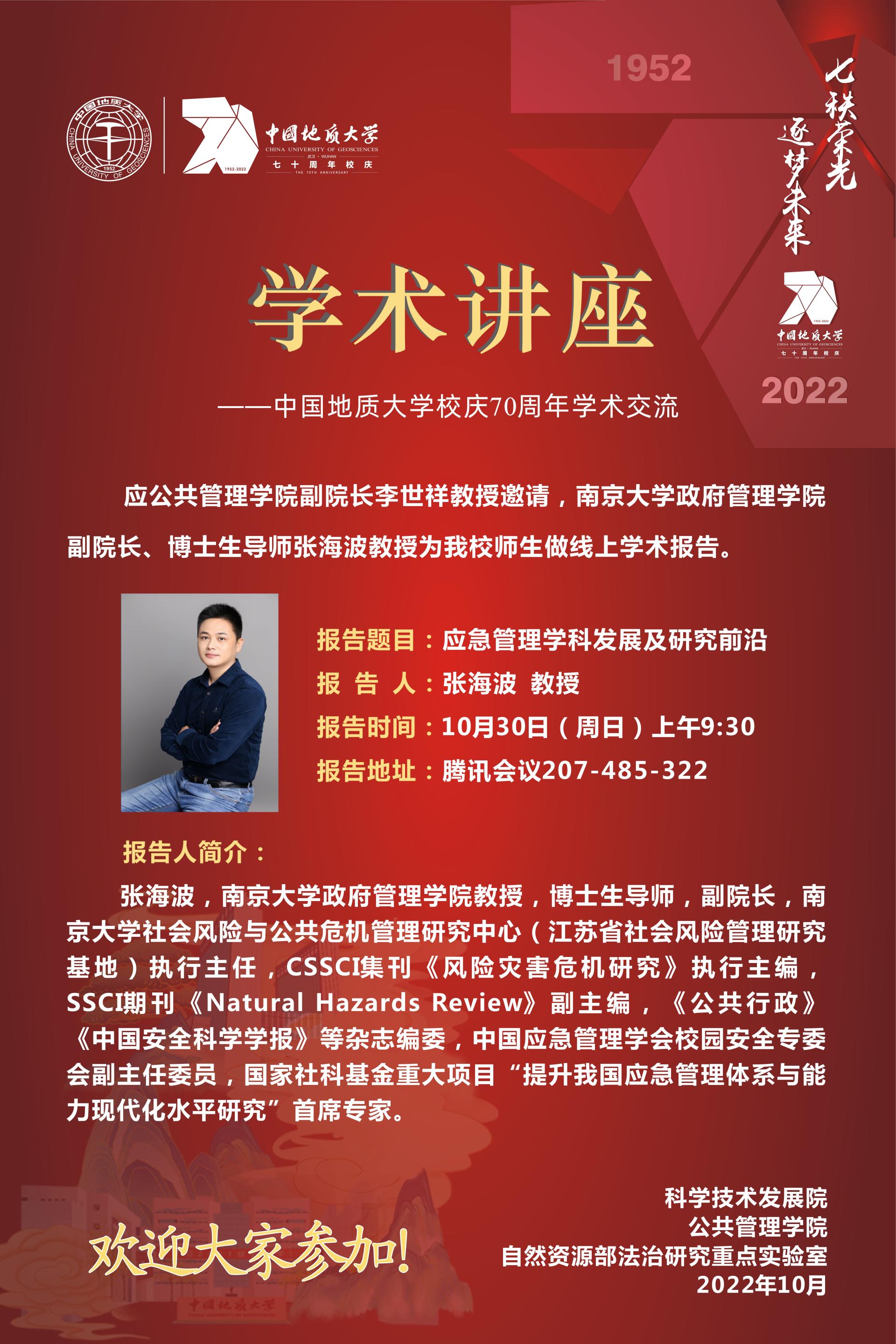 【讲座预告】应急管理学科发展及研究前沿(2022年10月30日)