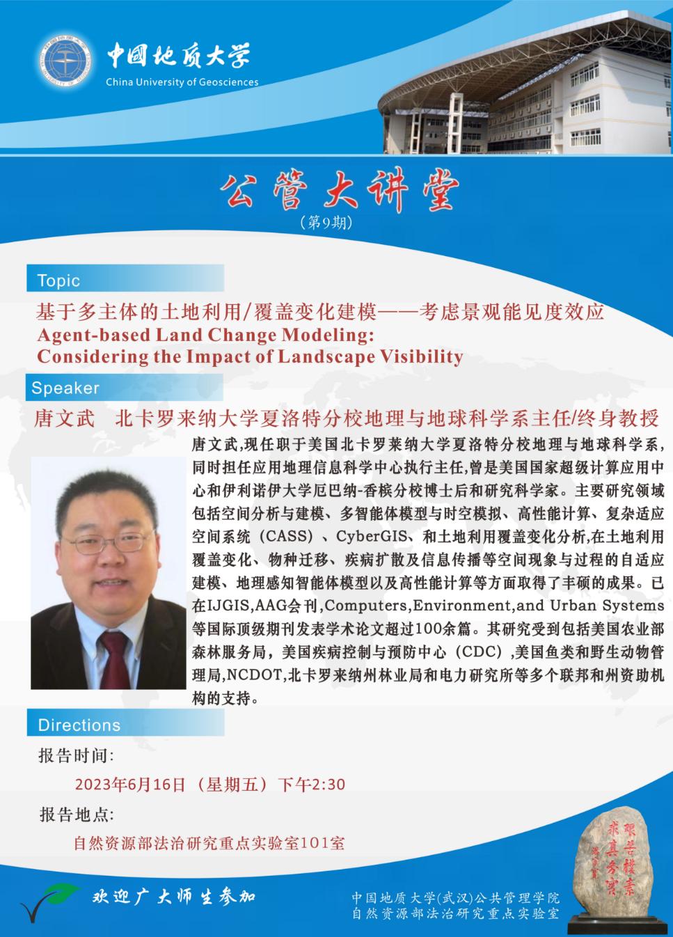 【讲座预告】基于多主体的土地利用/覆盖变化建模一一考虑景观能见度效应