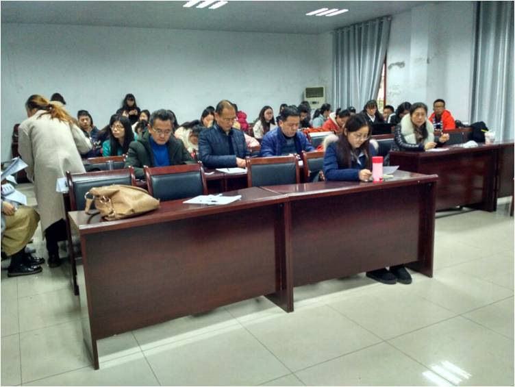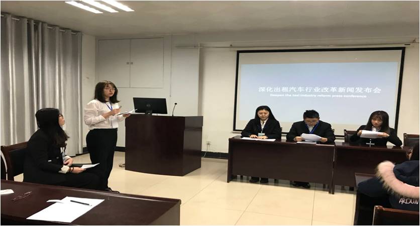 20171229日,1721511721521731513个教学班的《模拟新闻发言人训练》课程在公管实验楼101进行,由刘中兰副教授担任课程设计,由曾伟教授、卓成刚教授、罗辉教授、李晓玉副教授和刘中兰副教授担任评委。课程按照教学设计有条不紊地进行,受到了学生们的喜爱和好评。